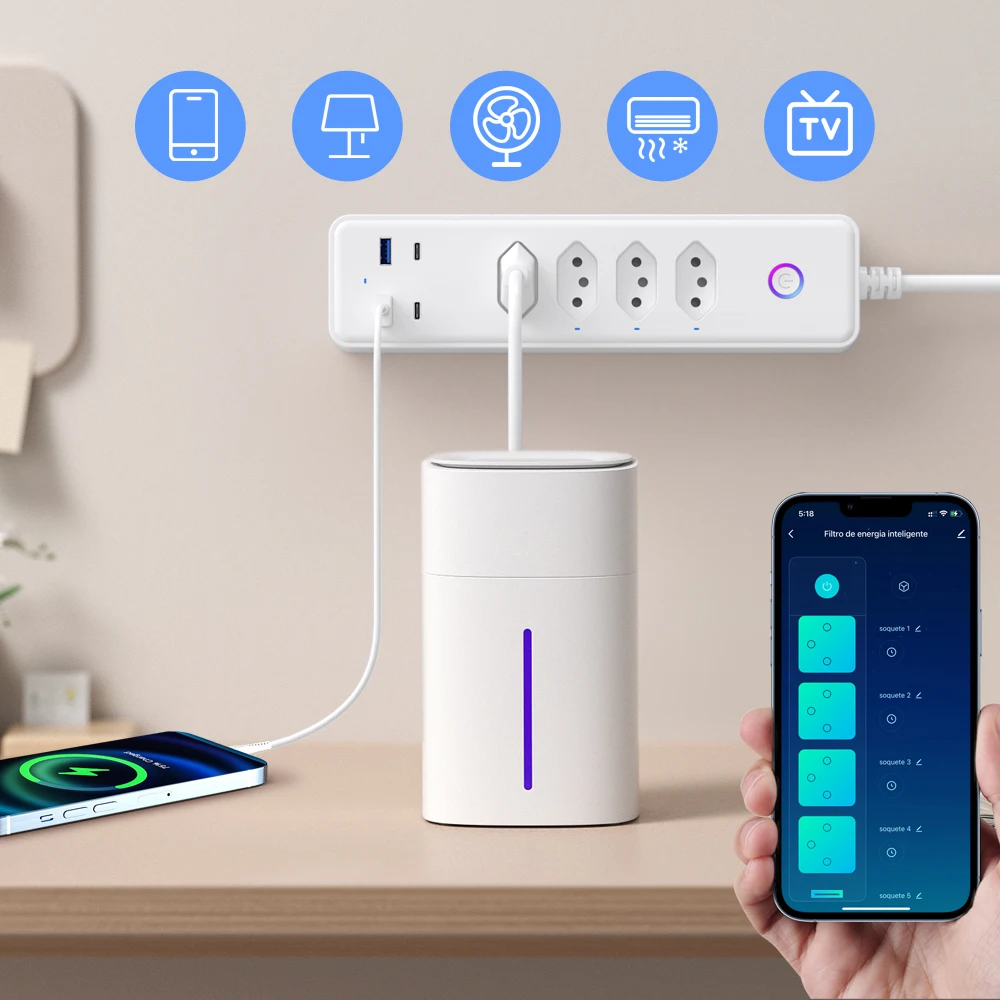 Tomacorriente inteligente AVATTO es una solución moderna y eficiente para el hogar o la oficina. Compatible con el estándar de enchufe brasileño (tipo N), permite automatizar y controlar dispositivos eléctricos directamente desde tu celular o con comandos de voz mediante Alexa o Google Home.
